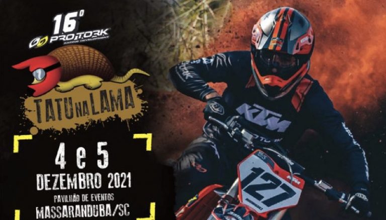 Data: 4 a 5 de dezembroLocal: Pavilhão de Eventos de Massaranduba (SC)Inscrições: https://eventos.sportbay.com.brAdulto: R$ 135 – Concorre a 1 Honda CRF250F, 1 reboque carretinha 0km e dez prêmios de R$ 500 em dinheiro. Incluso: camisa, café da manhã, lanche no neutro e almoço. Infantil: R$ 70 – Concorre a cinco prêmios de R$ 350 em dinheiro, mais cinco vale-compras de R$ 350 na loja da Pro Tork. Incluso: camisa, lanche no neutro e kit lanche.Informações: www.tatunalama.com.br