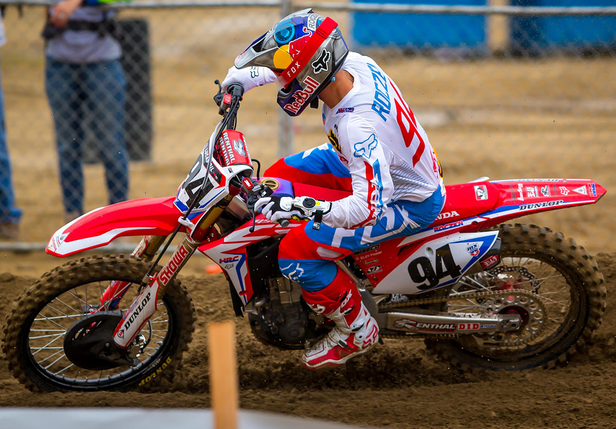 Na primeira bateria, Christian Craig marcou o holeshot a bordo de sua CRF450R, com Roczen na cola. Logo após Craig caiu duro e demorou a voltar para a pista. Ele foi forçado a desistir da corrida e ficar de fora o resto do dia com o joelho esquerdo machucado (hoje o piloto declarou que esta fora da temporada). Com Craig fora, Roczen assumiu a liderança, onde permaneceu por mais da metade da corrida de 30 minutos mais duas voltas. Um pequeno erro permitiu que Eli Tomac diminuísse a diferença, mas Roczen manteve-se firme, lutando duramente para manter a liderança. A 11 minutos do fim, o alemão não conseguiu se defender dos ataques de Tomac e perdeu a liderança. Durante as últimas voltas, Roczen ficou sob fogo novamente, perdendo mais uma posição antes de tomar a bandeira quadriculada em terceiro. Quando o gate caiu na segunda bateria, Roczen larga bem e rapidamente pula para o segundo lugar, mas quando ouviu um barulho ele decidiu ser cauteloso e parar na área dos mecânica, onde uma pedra foi encontrada em sua tampa do pinhão. Depois de ser removida, Roczen voltou a a prova mas tinha perdido muitas posições. Ele passou o resto buscando posições e com uma impressionante performance conseguiu terminar a corrida em oitavo.