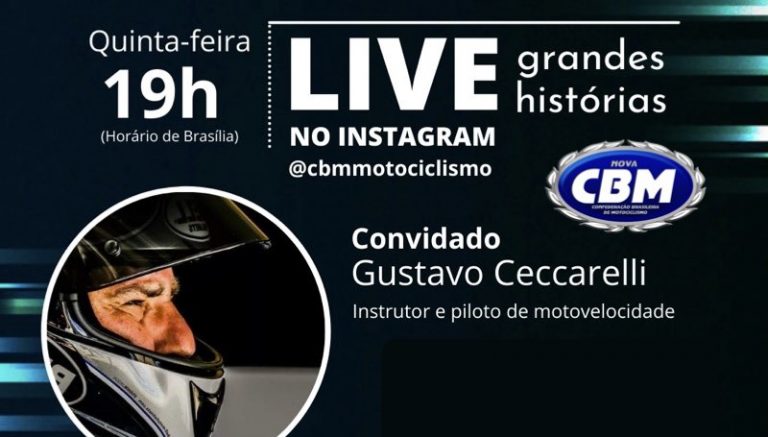 A Confederação Brasileira de Motociclismo (CBM) quer estreitar ainda mais os laços com os apaixonados pelo motociclismo. Por isso, nesta quinta-feira (10), dá início a série de lives “Grandes Histórias”, que eventualmente trará nomes importantes para o esporte em uma conversa descontraída na plataforma do Instagram. Quem entra ao vivo nesta semana é Gustavo Ceccarelli, instrutor de pilotagem e piloto de motovelocidade, que também já levantou troféus em modalidades como Supermoto e Cross Country.
