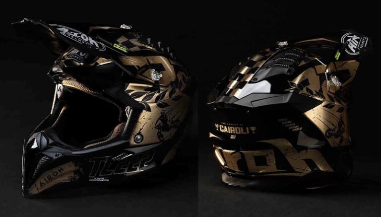 A Airoh anunciou uma edição especial para colecionador do capacete Aviator 3 Legend em comemoração à carreira de motocross de Tony Cairoli – gráficos e forro dourados, folhas de louro, tabuleiro de xadrez e o logotipo TC222 marcam este especial.