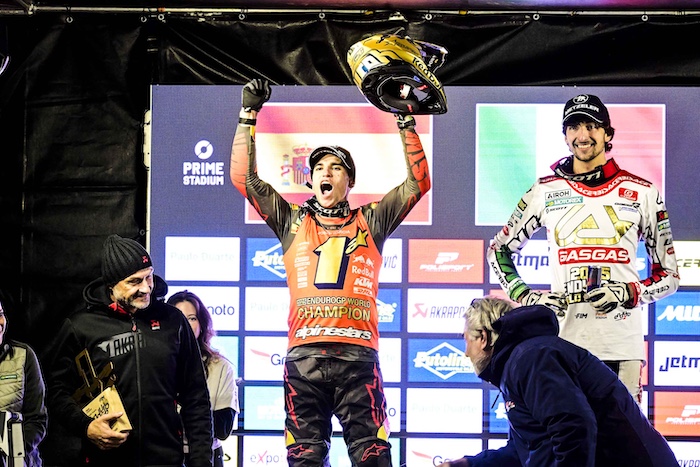 No EnduroGP, Josep Garcia garantiu o título mundial do Enduro1 na penúltima corrida do campeonato, demonstrando uma temporada de domínio absoluto. Andrea Verona consolidou sua liderança no Enduro2, tornando-se campeão mundial com todo o mérito, enquanto a batalha pelo título do EnduroGP viu os dois pilotos lutarem pela vitória da categoria até a última corrida, que acabou sendo vencida pelo espanhol.