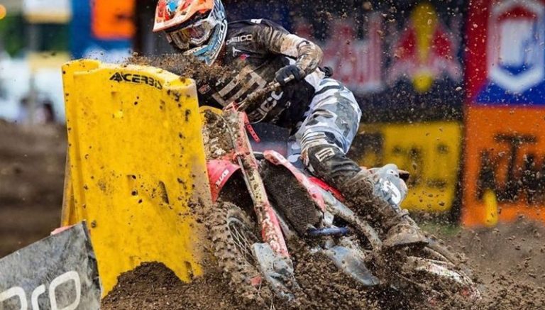 Desta vez, o jovem australiano deslocou um ombro na lamacenta primeira bateria do AMA Motocross 250 em Loretta Lynn’s 2.