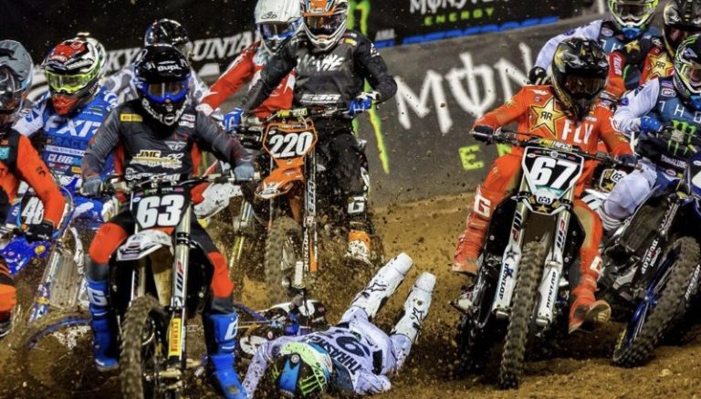 Não é exatamente o resultado que esperava hoje. Chegando à temporada, eu estava lidando com uma lesão no polegar que afetou minha habilidade de segurar o guidão às vezes e, infelizmente, paguei o preço por isso esta noite. No geral, fiquei muito feliz com minha pilotagem. Eu me qualifiquei em quarto lugar, cheguei em quinto na corrida classificatória e estava em uma ótima posição na frente do pelotão no evento principal após o reinício, mas os whoops desta noite estavam comendo uma tonelada de pilotos e minha mão escorregou quando eu estava passando por eles e me jogou no chão. Estou apenas machucado e espancado, mas vou levar as próximas duas semanas para deixar meu corpo descansar para que eu possa acelerar em Daytona.