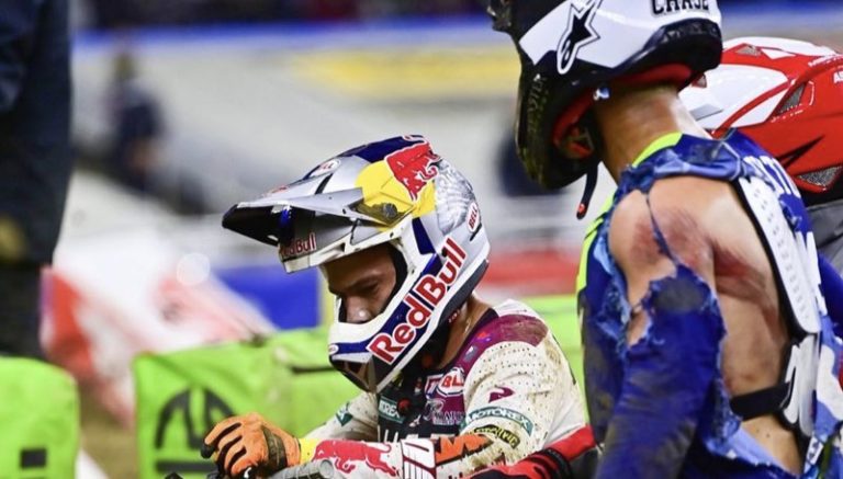Após o acidente neste sábado no main event, Chase Sexton e Cooper Webb parecem estar bem. O piloto da Honda disse em sua conta social que teve escoriações leves e que está pronto para a próxima etapa.