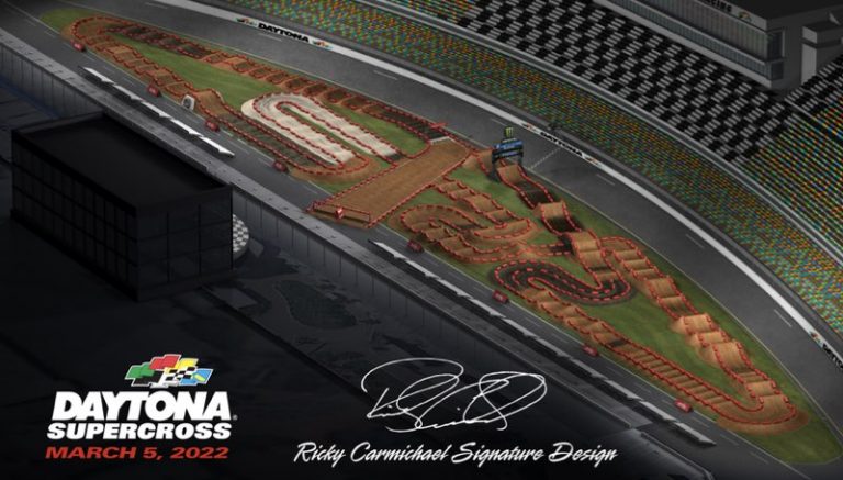 Daytona International Speedway revelou hoje o projeto do percurso para o 52º Daytona Supercross em 5 de março e, pelo 15º ano consecutivo, o layout único e difícil foi criado por Carmichael, o cinco vezes campeão do Daytona Supercross. Será o mais difícil da temporada do Campeonato Monster Energy AMA Supercross e o único evento AMA Supercross no estado da Flórida em 2022.