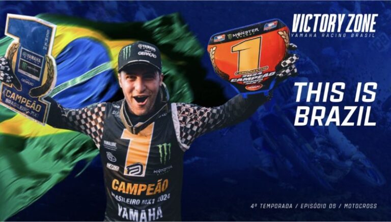 Deu Brasil na cabeça na principal categoria do motocross nacional! Fábio Santos, da Yamaha Monster Energy Geração, levou sua YZ450F ao topo para se tornar tricampeão da MX1. O novo capítulo de VICTORY ZONE 2024, chamado “This Is Brazil”, vai mostrar bastidores exclusivos e detalhes inéditos da jornada de Santos até o título. O episódio tem estreia marcada para esta quinta-feira (22), às 20h, no canal oficial da Yamaha Racing Brasil no YouTube.