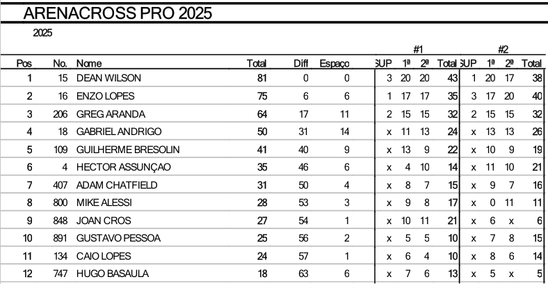 O Arena Cross abriu com chave de ouro neste fim de semana em Interlagos, São Paulo. Com disputas acirradas, o público presente acompanhou e vibrou com o espetáculo. Confira abaixo como estã a classificação do campeonato.