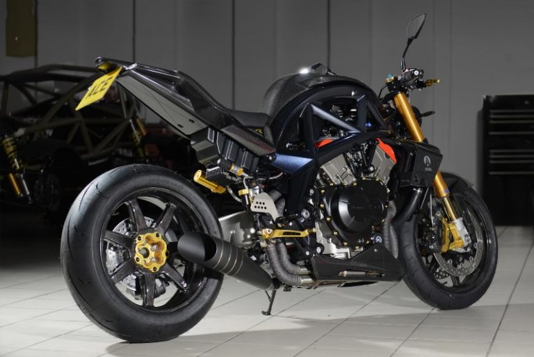 Apesar de carregar DNA das clássicas, a Ace R possui muitos elementos confeccionados em fibra de carbono, desde as rodas, aletas laterais, até para-lamas e revestimento do tanque de combustível. Seu quadro é produzido a partir de um único bloco de alumínio, em acabamento preto, enquanto seu desempenho é traduzido nos seguintes números: 0 a 100 km/h em 2,7 segundos e velocidade máxima de 298 km/h.