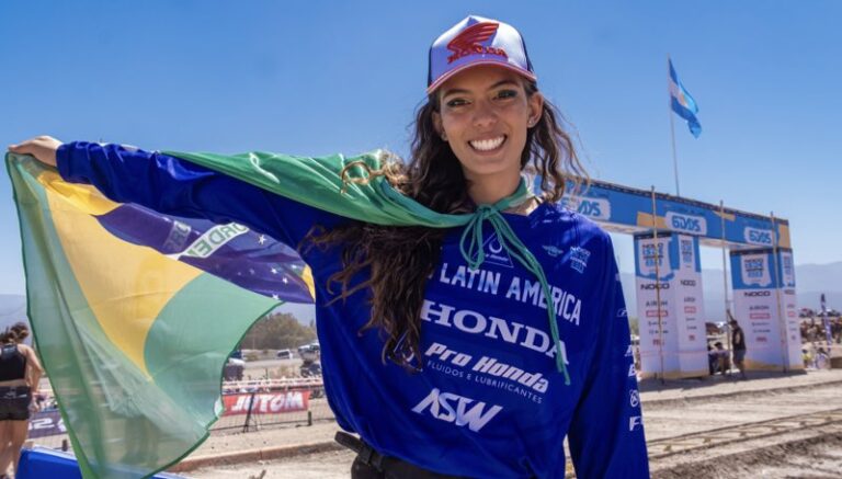 Bárbara Neves foi nomeada embaixadora do Enduro pela Federação Internacional de Motociclismo (FIM) na América Latina. Pentacampeã brasileira e duas vezes campeã latino-americana, a pilota da equipe Honda Racing fez história na temporada 2023 ao subir em terceiro lugar no pódio do International Six Days Enduro (ISDE), evento considerado a Copa do Mundo da modalidade, com a motocicleta Honda CRF 250F.