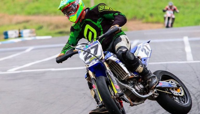 Chiquinho Velasco mostrou toda sua garra na disputa em Nova Odessa (SP), neste domingo (08), pela quarta etapa do Campeonato Brasileiro de Supermoto 2017. O evento aconteceu no Kartódromo Internacional da cidade, um ótima escolha da organização.