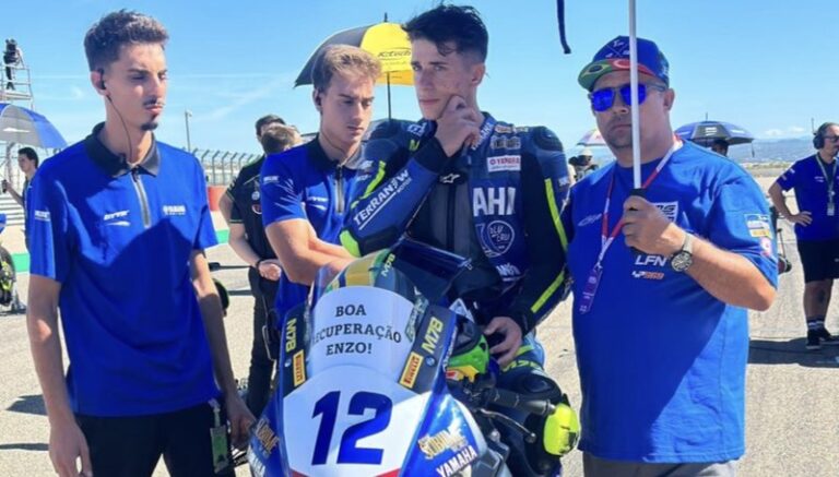 Durante a Superpole eu tive um tombo e ali no momento não parecia ser muita coisa. Fui para o centro médico, fiz um raio-x e, infelizmente, eu quebrei o ombro, a cabeça do úmero. Por sorte não saiu do lugar, então não vai ser nada mais sério, que precisa de cirurgia, mas infelizmente eu estava no ritmo desse fim de semana, de ir para Portimão, e agora é voltar para casa e me cuidar, me tratar, e talvez em um mês já possa estar melhor. Agora é preparar para o ano que vem, lamentou Enzo.