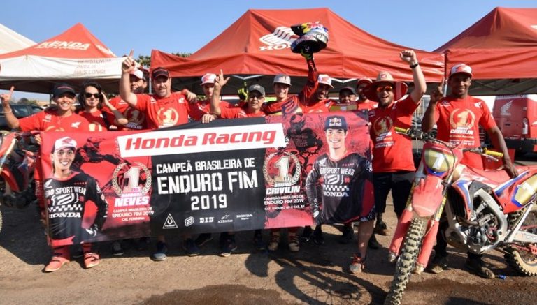 A equipe Honda Racing está em festa pela conquista de três títulos no Campeonato Brasileiro de Enduro FIM 2019, neste domingo (15/9), em Patrocínio (MG). O capixaba Bruno Crivilin foi o grande destaque e fechou a temporada com o bicampeonato nas categorias E1 e Enduro GP, direcionada aos mais rápidos da competição. Ele acelerou a motocicleta Honda CRF 250RX. Além disso, a goiana Bárbara Neves confirmou a taça da classe EF, a segunda da sua carreira, pilotando o modelo nacional Honda CRF 250F.