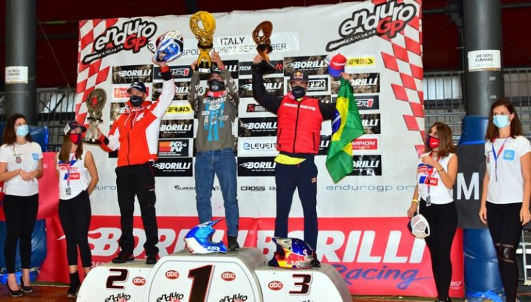 Bruno Crivilin voltou ao pódio do Campeonato Mundial de Enduro 2020 neste domingo (27/9), no segundo dia de disputas do GP da Itália, em Espoleto. Além de vencer uma especial (trecho cronometrado), o piloto brasileiro conquistou o terceiro lugar na categoria J1 (até 23 anos e com motos até 250cc). Assim, ele repete o desempenho histórico obtido na segunda etapa do GP da França, que abriu a temporada da principal competição da modalidade. Os resultados consistentes com a motocicleta Honda CRF 250RX confirmaram Crivilin em quarto lugar na briga pelo título mundial da J1.