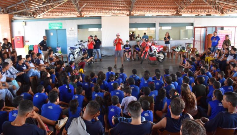 Nesta-sexta feira os pilotos das patrocinadoras oficiais do Campeonato Brasileiro de Motocross, Honda, Rinaldi, Yamaha e IMS vão bater um papo com crianças de toda rede municipal de ensino de Faxinal, tirar dúvidas sobre o motocross, conhecer a trajetória da carreira dos pilotos, tirar fotos e dar autógrafos. Os alunos ainda vão participar de dinâmicas com os atletas, e realizar plantio de árvores. A proposta é motivar e atrair a nova geração para o esporte. Uma palestra sobre primeiros socorros será conduzida pelo médico oficial do BRMX, dr. Sérgio Grisende, mais conhecido como Dr. Osso. Será passado ao público como é feito o atendimento médico dentro da pista e quais os equipamentos são fundamentais para evitar ou amenizar lesões em caso de quedas.
