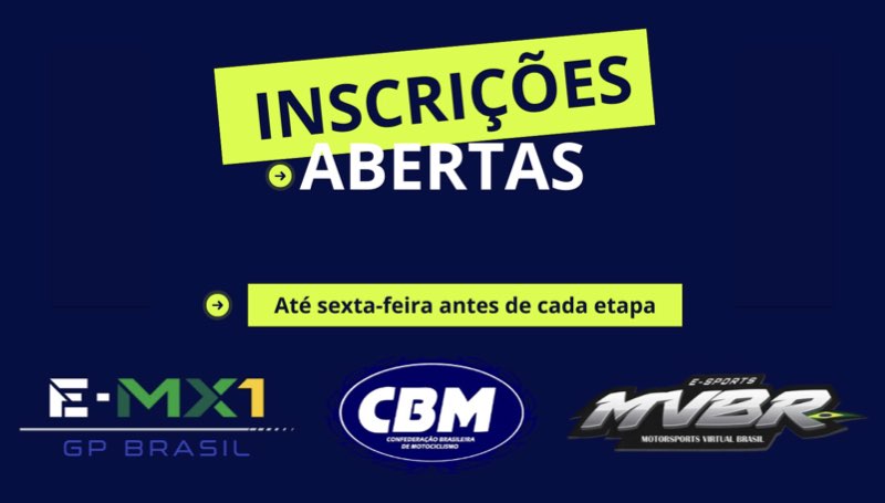 Aberto a todos os públicos, o E-MX1 é a oportunidade perfeita para competir ao lado do seu piloto preferido e nas pistas reais por onde o campeonato passou e sentir de perto a emoção das pistas, agora dentro da tela do computador. As inscrições já estão abertas e podem ser feitas até as 18h da sexta-feira que antecede cada corrida pelo link ( https://mxbracing.com.br/e/ajrr8bd3 ). Após esse horário, novas inscrições não serão permitidas. O valor da inscrição é de APENAS R$ 24,90.