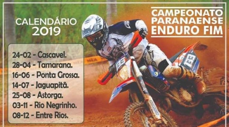 A primeira das sete etapas que contemplam o Campeonato Paranaense de Enduro FIM 2019 será realizada neste domingo, dia 24 de fevereiro, a partir das 10h, na cidade de Cascavel, localizada na região Oeste do estado. Os pilotos estão ansiosos, a expectativa é que cerca de 100 participem da disputa.