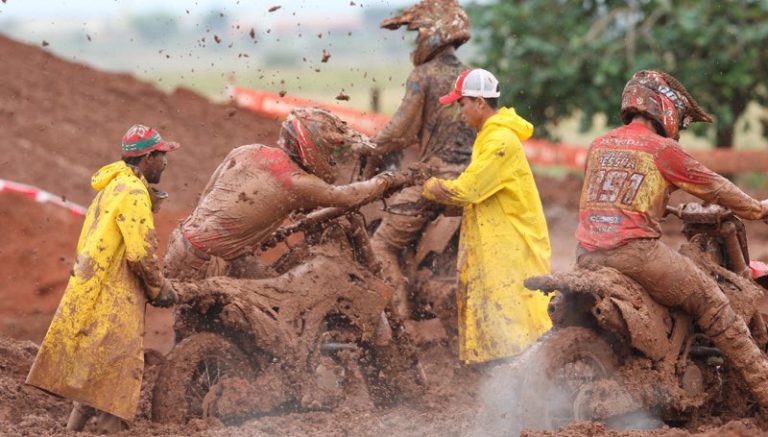 Muita chuva e barro. Esse é o resumo da quinta etapa do Campeonato Brasileiro de Motocross, disputada neste domingo na cidade de Tupaciguara, no Triângulo Mineiro. Os pilotos, principalmente das categorias MX1 e MX2, ficaram cheios de lama. Mas, no balanço final, os resultados foram bons para os pilotos Honda.