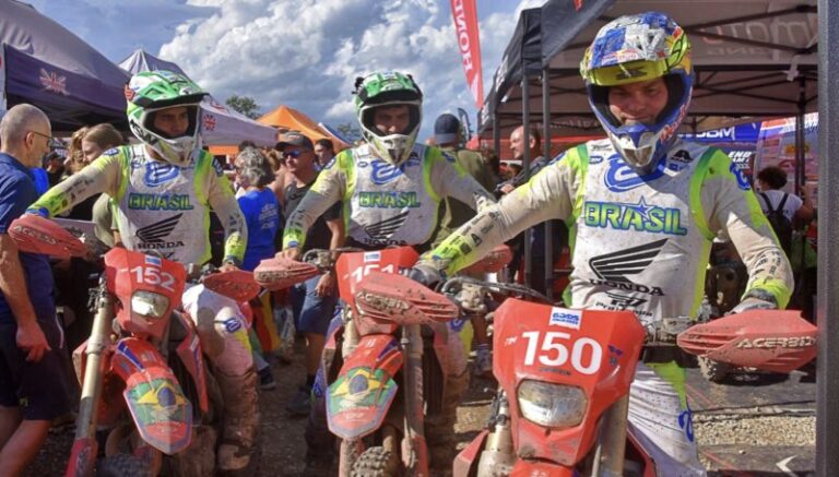 Desafio superado pelos pilotos da equipe Honda Racing que integraram a Seleção Brasileira na 99ª edição do International Six Days Enduro (ISDE). A prova, considerada a Copa do Mundo da modalidade, chegou ao fim nesta sexta-feira (29/8), em Bérgamo, Itália. Bruno Crivilin, Luciano Rocha e Vinícius Calafati levaram o país à 13ª posição no World Trophy (classificação entre nações) ao lado de Renato Paz, o Muguinho. Além disso, concluíram o evento com a medalhas de prata. Como é tradição, o sexto e último dia foi marcado por uma disputa curta, em formato de motocross, e bastante intensa, com largadas coletivas.
