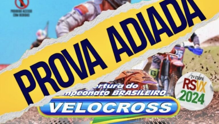 A Etapa da Abertura do BRVX – Campeonato Brasileiro de Velocross, e 2ª Etapa do RSVX – Campeonato Gaúcho de Velocross 2024, prevista para ser realizada nos dias 18 e 19/maio próximo em Arroio do Meio/RS, está adiada.