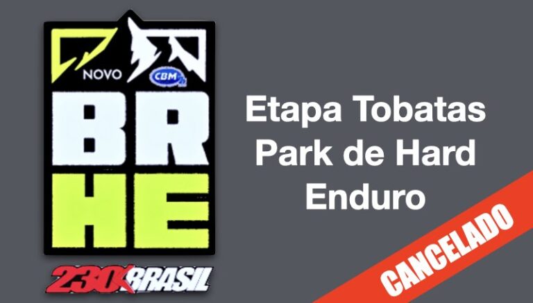A organização do Campeonato Brasileiro de Hard Enduro (BRHE) comunica o cancelamento da etapa que seria realizada no Tobatas Park, prevista para ocorrer no Estado do Rio Grande do Sul, nos dias 16, 17 e 18 de maio.