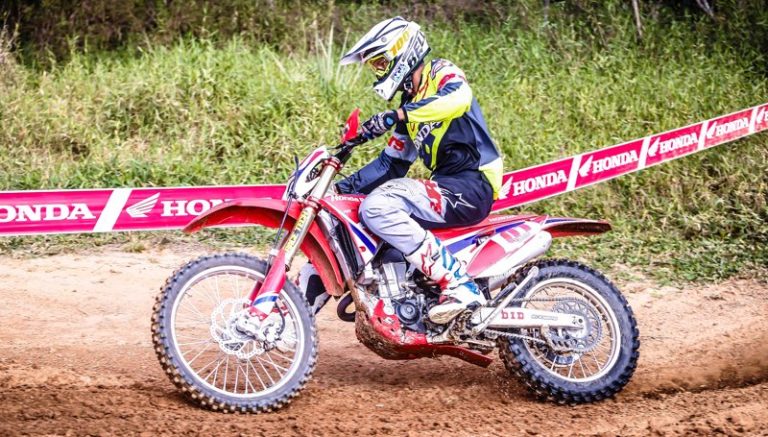 “Acho que a prova de Bueno Brandão vai ser bem bacana, a expectativa é a melhor possível para que eu tenha um ótimo desempenho. Estou a mil para tentar manter a invencibilidade na Copa EFX. Vamos com tudo”, afirmou. Ele acelera a motocicleta Honda CRF 450RX.