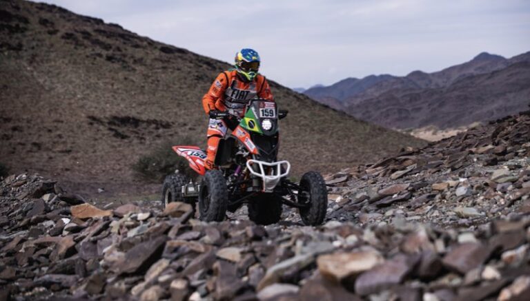 “Literalmente um rio de pedras”, diz Marcelo Medeiros. O piloto da TAG Racing conseguiu se superar e completar a segunda etapa do 45° Dakar. O maranhense e sua Yamaha Raptor 700, #159, concluíram os 430 quilômetros da especial, num percurso total de 589,07 quilômetros com deslocamentos, desta segunda-feira na 14ª posição entre os quadriciclos em uma jornada de 09h45min37. A partida foi dada no Sea Camp às margens do Mar Vermelho e depois de um verdadeiro rio de pedras a chegada parecia miragem e à vista um oásis, era Alula, localiza ao noroeste da Arabia Saudita, com suas falésias e palmeiras deslumbrantes.