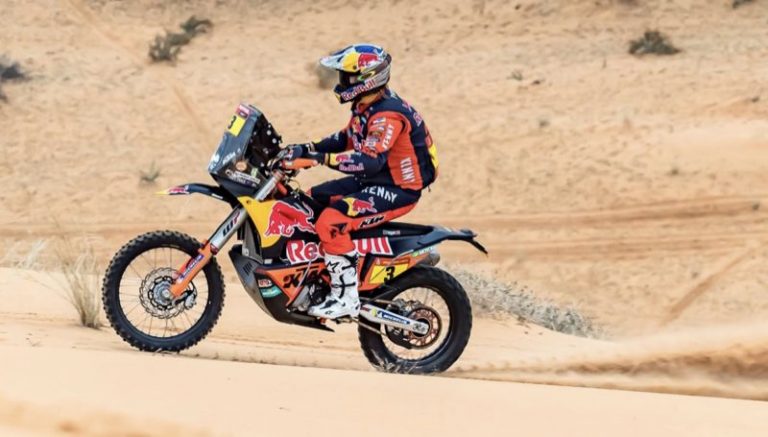 Quando ocupava o segundo lugar na classificação geral – e depois de solucionar o difícil problema do pneu traseiro na etapa maratona – e com todas as chances de vencer o rali, Toby Price caiu esta manhã na nona etapa, que se está sendo disputada em torno de Neom, e teve que abandonar o evento.