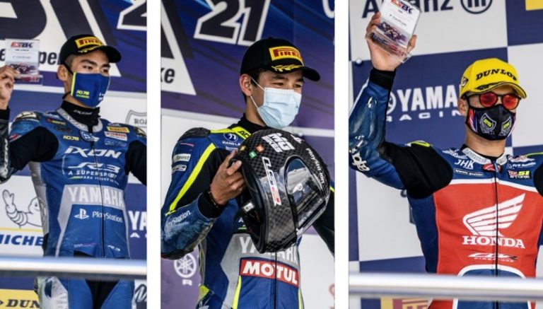 Eric Grananado, Meikon Kawakami e Ton Kawakami sobem ao pódio no circuito de Jerez de la Frontera