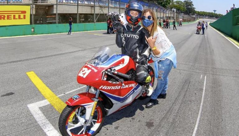 Se tem uma pessoa que sempre esteve do meu lado, passou por muitas coisas para me ajudar é a minha mãe. Admiro muito o foco, determinação e a garra dela. Tudo o que ela quer, ela luta e batalha. Pode sofrer até bastante, mas no final, sei que ela vai conseguir. Sem esses valores que eu vejo nela, eu não teria conseguido nem metade das coisas na minha vida, comenta a jovem de 13 anos, que já tem no currículo quatro temporadas na Honda Junior Cup. Abrace a mãe de vocês! Todo o dia é dia delas, dê valor e carinho, porque a sua mãe é uma pessoa que sempre vai te ajudar e apoiar, finaliza Gigi.