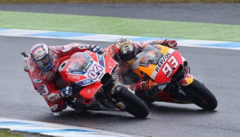 A chuva torrencial que caiu em Motegi neste domingo (15) fez a corrida da MotoGP ser uma das mais tensas da temporada. O duelo entre Marc Márquez e Andrea Dovizioso foi até a última curva da última volta e teve, assim como na Áustria, o italiano saindo como vencedor.