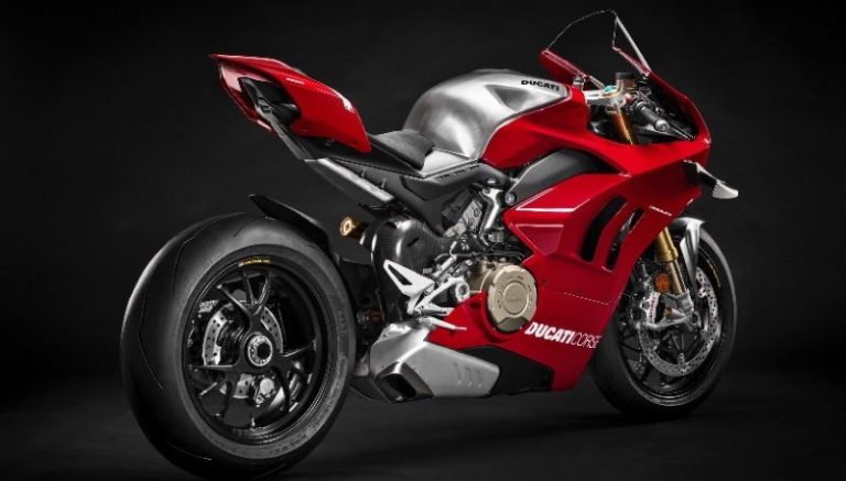 A V4 é uma moto que substituiu a 1299 Panigale, equipada com motor de quatro cilindros de 998 cc e capaz de gerar torque de 11,5 kgf.m. Toda essa potência está em uma moto de apenas 172 kg. A V4R está homologada para andar nas ruas e apresenta uma potência máxima de 221 cv, sete cavalos a mais que a Panigale V4.