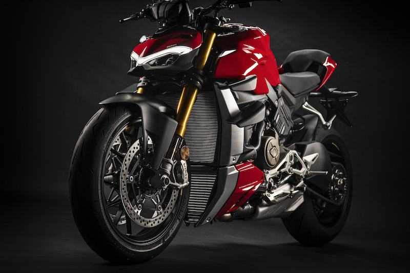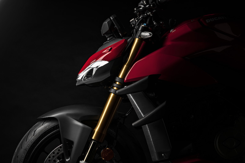 O desempenho exuberante da Streetfighter V4 é mantido sob controle pela eletrônica refinada tirada diretamente da Panigale V4 e pelas asas duplas laterais de configuração do desenvolvidas pela aerodinâmica da Ducati Corse. As asas, colocadas em posição avançada para maximizar o efeito, geram 28 kg de “downforce” à 270 km / h, reduzindo a “flutuação” da roda dianteira em altas velocidades e a tendência ao wheelie, e aumentando a estabilidade durante as fases de frenagem, entrada e curvas.