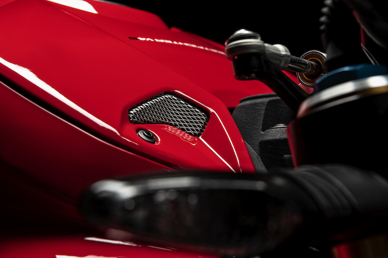 A potência e o torque podem aumentar ainda mais, chegando a 223 cv e 130 Nm, respectivamente, com a montagem do escapamento de corrida Ducati Performance by Akrapovič, que também reduz o peso em menos 6 kg.