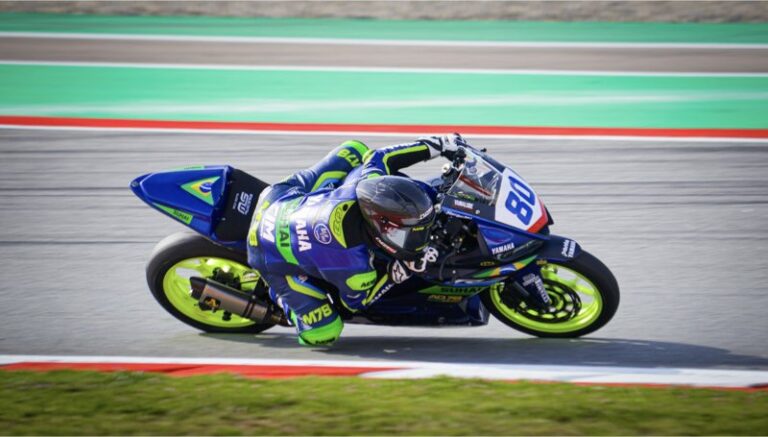 A “Catedral” do motociclismo costuma ser generosa com os brasileiros. Em 2023, Humberto Maier, o Turquinho Jr., cruzou a linha de chegada em primeiro lugar na WSSP300. Na etapa do Mundial Yamaha R3 bLU cRU (então R3 bLU cRU European Championship) em Assen, o pódio foi todo verde-amarelo: Gustavo Manso, Eduardo Burr e Kevin Fontainha brilharam e ocuparam os três degraus.