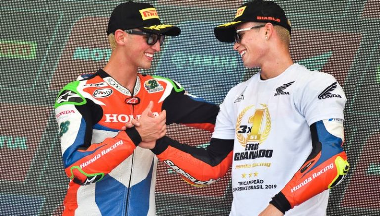 A equipe Honda Racing comemorou o sétimo título de sua história na categoria principal do SuperBike Brasil, com direito a dobradinha. Acelerando a motocicleta CBR 1000RR Fireblade SP, Eric Granado faturou o terceiro título consecutivo da SuperBike Pro neste domingo (1/12), na pista do Autódromo de Interlagos, em São Paulo (SP), após vencer as duas corridas válidas pela etapa final do campeonato. Pedro Sampaio confirmou o segundo lugar nas provas e garantiu o vice-campeonato da temporada 2019.