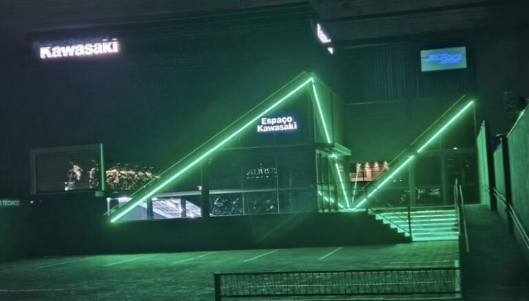Com 3.200m² de área construída, o Espaço Kawasaki reúne design contemporâneo, atendimento de alto padrão e soluções integradas, reforçando o posicionamento da marca como referência em tecnologia, performance e estilo no segmento de duas rodas.