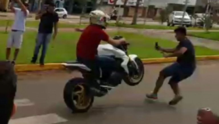 Um dos vídeos divulgados nas redes sociais mostra o momento exato em que o motociclista faz a apresentação, em alta velocidade, e logo em seguida colide contra um rapaz, que passou na frente. Este, porém, encontra-se em estado gravíssimo no Hospital Regional, pois teve o lado esquerdo do peito dilacerado, de modo que estásendo atendido na sala de cirurgia.