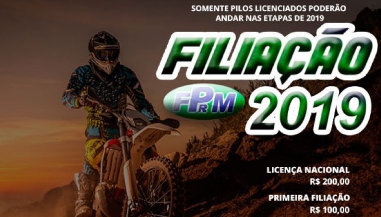 A filiação à Federação Paranaense de Motociclismo para a temporada 2019 já pode ser realizada através do site da entidade: www.fprm.com.br. O investimento para os pilotos que desejam continuar competindo é de R$ 200, enquanto a primeira filiação custa R$ 100, podendo ser parcelado em até 12x no cartão de crédito.