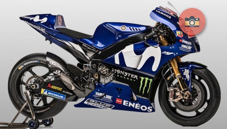 Ao contrário dos rumores que circularam durante as últimas semanas a decoração das Yamaha 2018 é praticamente a mesma em comparação com o último ano. A grande novidade está no logotipo do principal patrocinador pelo quinto ano consecutivo, a Movistar, que deixa de aparecer em tons de verde e surge em branco.