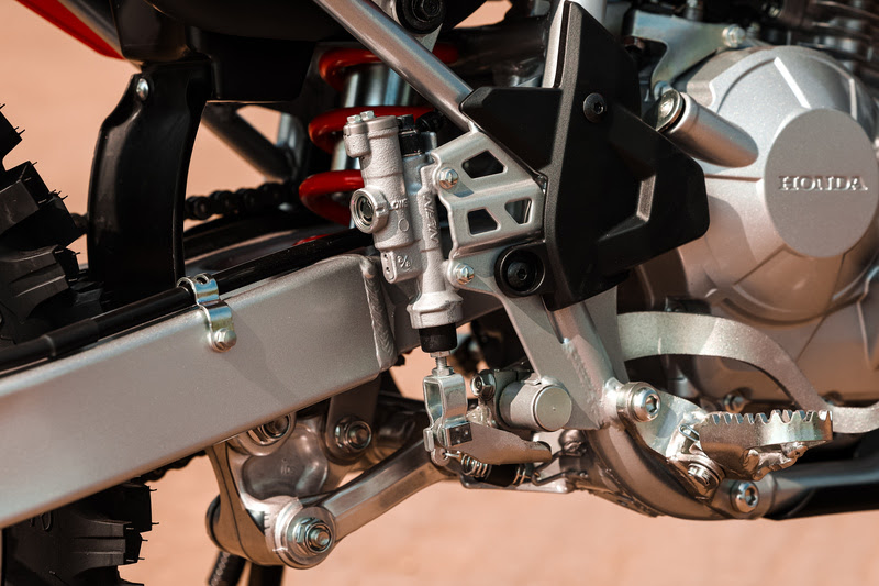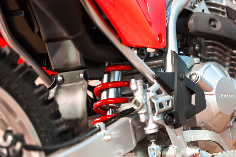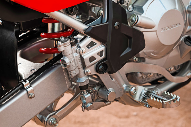 A ergonomia, sempre um fator de grande importância, preserva a receita de sucesso da família CRF. O assento, estreito e longo, permite a devida movimentação do piloto em busca da maior eficiência na condução. A distância mínima em relação ao solo é generosa, 290 mm, enquanto o peso a seco está contido a 119 kg.