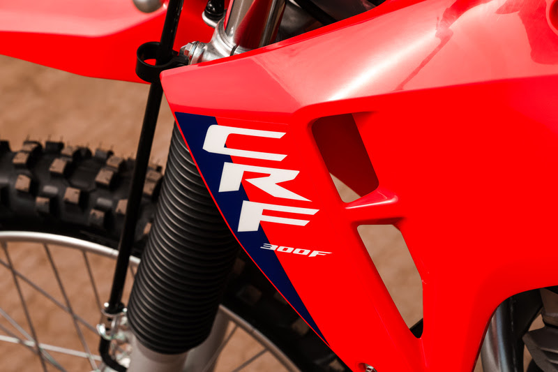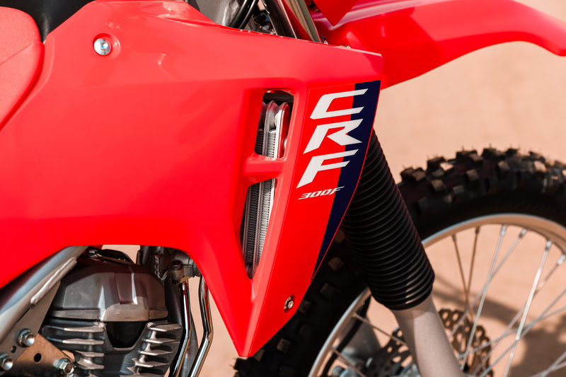 Quanto à parte ciclística, a CRF 300F traz novo ajuste de suspensões, sistema de freio dianteiro atualizado e vários componentes novos visando maior eficiência e contenção de peso mesmo com a elevação da capacidade do motor.