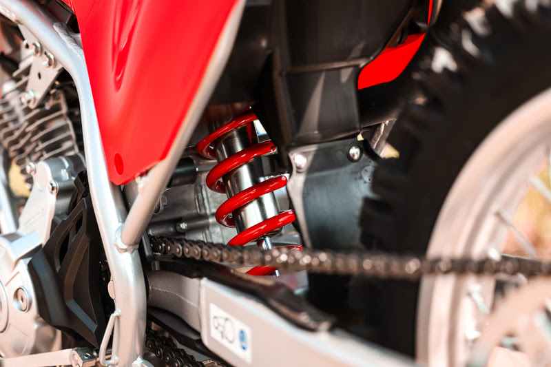 No que diz respeito ao incremento da praticidade/funcionalidade, a CRF 300F traz um cavalete reposicionado que permite a mesma estabilidade em estacionamento, mas melhora a distância em relação ao solo e reduz a chance de o componente raspar no solo ou em obstáculos com facilidade.