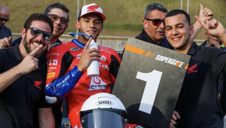 O piloto Guilherme Brito, da equipe satélite Honda, teve um fim de semana inesquecível no Autódromo de Potenza, em Lima Duarte (MG), na sexta etapa do SuperBike Brasil 2023. Após fazer a pole position no sábado (12/8), estabelecendo o recorde da pista, o paulista venceu a prova da categoria SuperBike Pro neste domingo (13/8) de forma emocionante, após ultrapassagem na última curva. Já o seu companheiro de equipe, João Carneiro, cruzou a linha de chegada em quarto, garantindo mais um pódio na temporada. Ambos competem com as motocicletas Honda CBR 1000RR-R Fireblade SP.