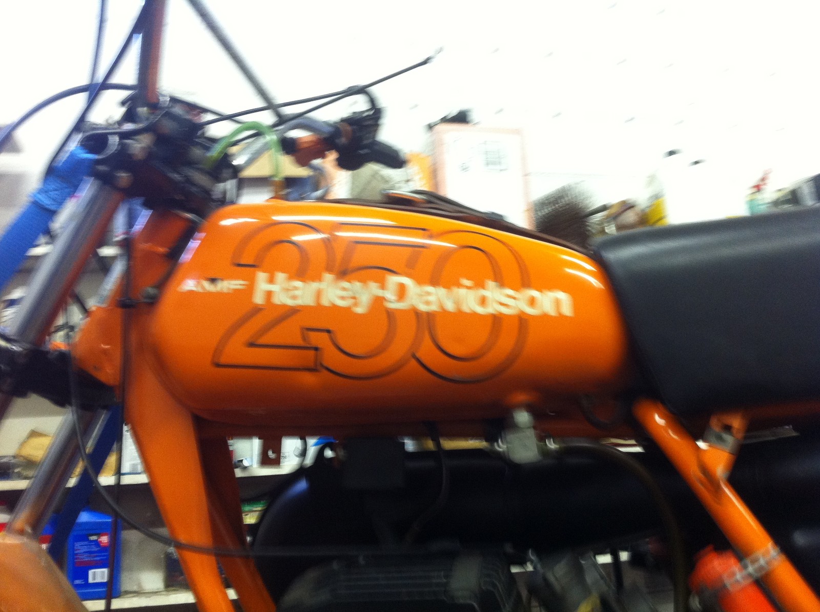 O primeiro produto da Harley-Davidson no motocross foi através do casamento de Harley, Aermacchi e AFM. Quando a empresa-mãe, a AMF, pediu a Harley para entrar no crescente mercado do motocross, a italiana Aermacchi era uma fonte confiável de motores de dois tempos. No Omaha 250 MX National de 1974, Sonny DeFeo estreou a primeira Harley-Davidson MX-250. Apenas 65 exemplares foram fabricados nas instalações de Milwaukee. O motor de 242cc Aermacchi foi instalado em um quadro cromoly, construído pela Champion, e a moto atingiu o peso total de 96 quilos.
