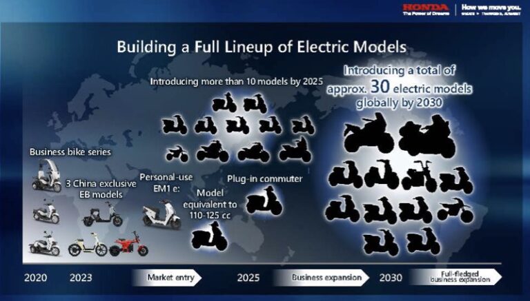 A Honda revisou sua meta anual de vendas de motocicletas elétricas para 2030 para 4 milhões de unidades, um aumento de 500.000 unidades em relação ao anunciado em setembro do ano passado, e irá acelerar ainda mais seus esforços para popularizar as motocicletas elétricas.