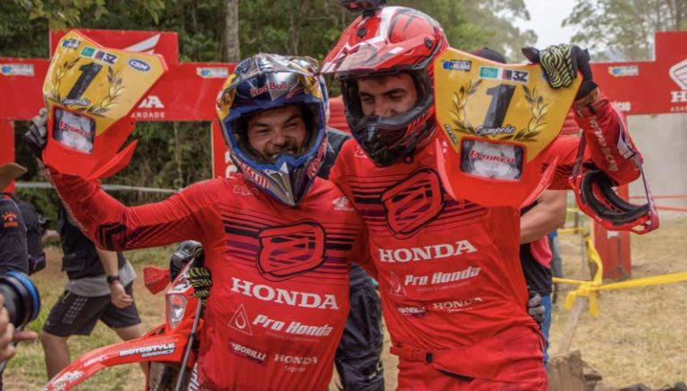 É muito bom ter no time dois grandes pilotos como o Bruno e o Vinicius. Encerramos mais um ano com os títulos nas duas principais categorias da modalidade, ressalta Felipe Zanol, chefe da equipe Honda Racing de Enduro.