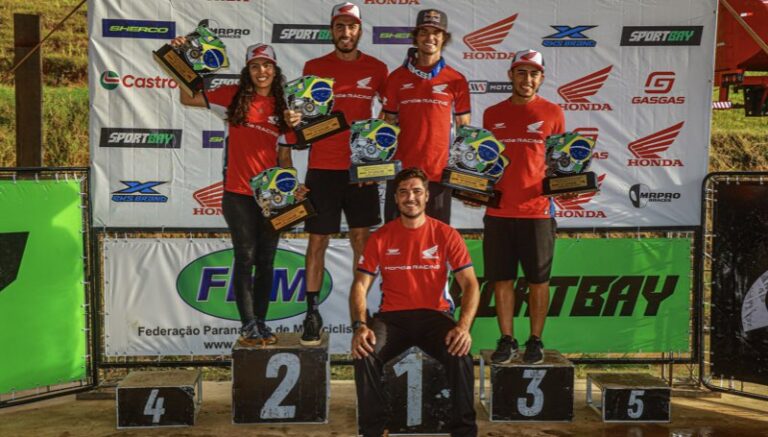 A equipe Honda Racing abriu a temporada 2025 do Brasileiro de Enduro do mesmo modo que a anterior: no alto do pódio. Juntos, os quatro pilotos do time somaram cinco vitórias na prova deste fim de semana (22 e 23/3), em Siqueira Campos (PR), dominando as suas categorias (E1, E2, E3 e EF) e também a Elite, a classificação combinada das principais classes da competição, com Bruno Crivilin.