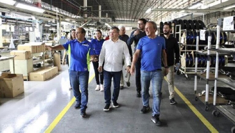 João Toledo e o diretor-presidente da unidade fabril, João Luiz Santos, receberam e guiaram a comitiva da Suframa, coordenada pelo superintendente Bosco Saraiva, nos galpões da planta, fornecendo informações técnicas detalhadas sobre a linha de produção e os modelos fabricados no local.