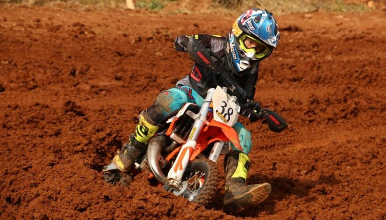 Caio Grosbelli, de apenas 9 anos, dita o ritmo no nacional da modalidade. Ele lidera sua categoria, a 50cc, de maneira invicta