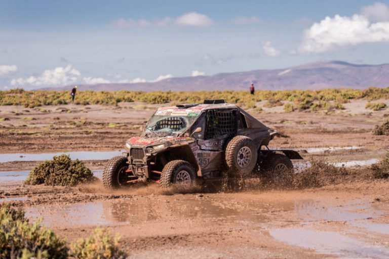 O trecho entre Uyuni (Bolívia) e Salta (Argentina), que marcou o fim da etapa maratona, em que os competidores largaram sem poder contar com a assistência de mecânicos, teve de tudo. Chuva forte, lama, rio que transbordou e até avalanche que impediu a passagem dos veículos de competição e apoio. Com tudo isso, os brasileiros mantiveram o foco e finalizaram o dia em segundo lugar, resultado que os manteve na primeira colocação geral da categoria.